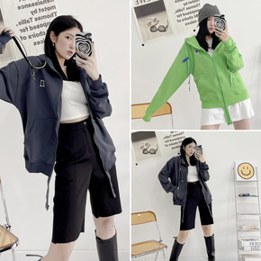 韩国潮牌ADER开衫刺绣病毒小怪兽连帽卫衣拉链外套...
