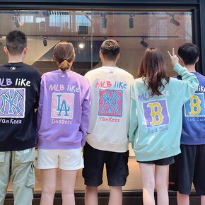 MLB韩国2022男女情侣新款毛圈方块发泡字母印花...