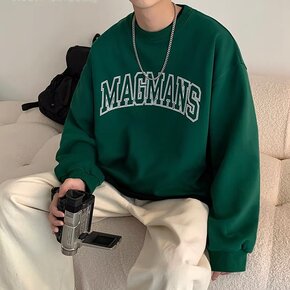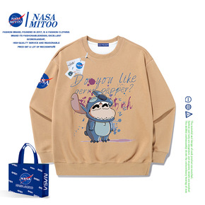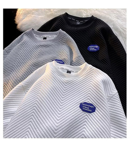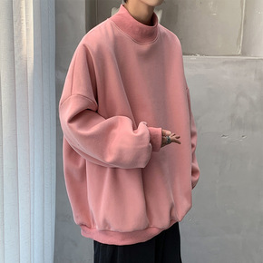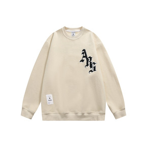 春季鹿皮绒棕色圆领长袖卫衣男欧美街头oversiz...