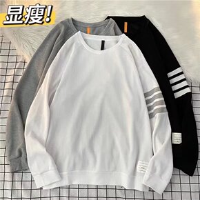 男装 2022秋季新款条纹卫衣男圆领百搭宽松情侣长...