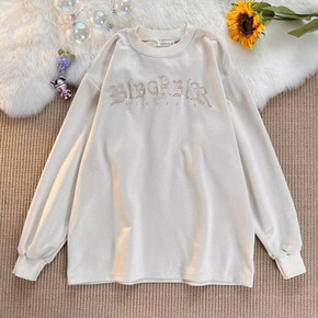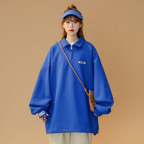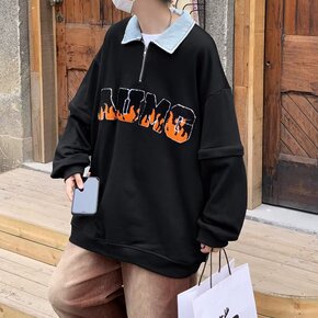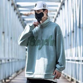 秋季美式毛巾绣字母嘻哈牛仔领复古卫衣情侣装半拉链长...