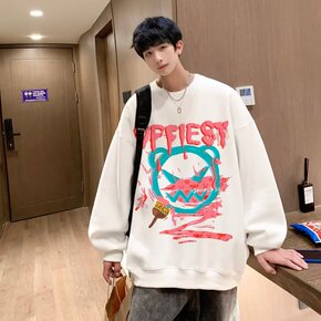 圆领无帽卫衣美式高街男春秋潮牌恶魔笑脸上衣over...