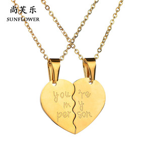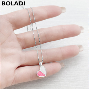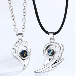 情侣项链一对心形磁吸100种语言我爱你简约男女吊坠...