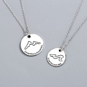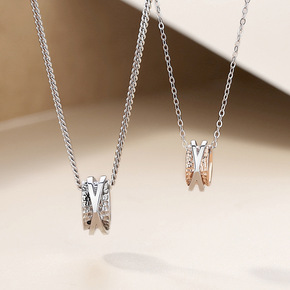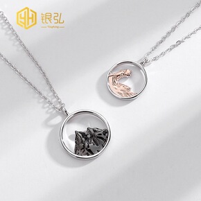 新万成原创情侣项链纯银Ins冷淡风不规则转动的爱吊...