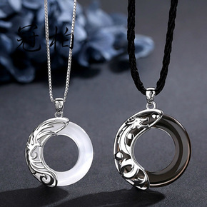 情侣项链荷塘月色男女一对潮纯银古风吊坠黑曜石中国风...