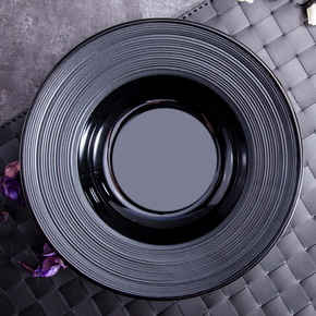 厂家现货复古餐具 特色餐厅酒店意面草帽深盘黑色线纹...