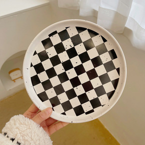 韩式ins风棋盘格陶瓷盘子蛋糕意面水果碟8寸家用甜...