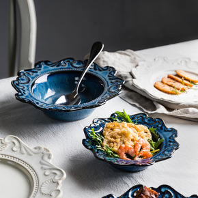 莫里 欧式复古浮雕陶瓷餐具家用碗西餐盘意面甜品盘菜...