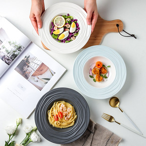 外贸拉丝螺纹陶瓷草帽盘菜盘意大利面西餐盘子深口汤盘...