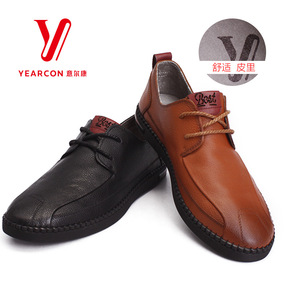 意尔康男鞋青年牛皮革软底系带9101AR51584...