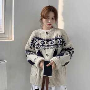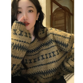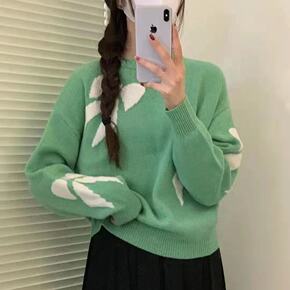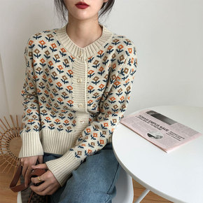 秋冬2021新款小花毛衣女日系复古宽松慵懒风外穿针...