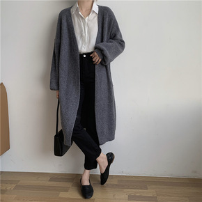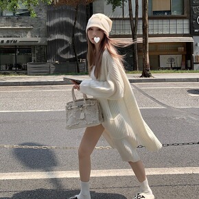 实拍 慵懒风中长款毛衣外套女宽松长袖针织开衫风衣5...