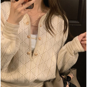 日系复古开衫毛衣女2021秋冬外穿宽松慵懒风洋气中...