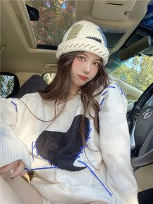 2021韩版秋冬新款宽松外穿网红卡通套头毛衣女慵懒...