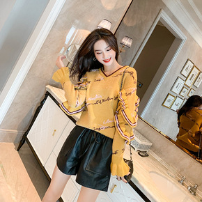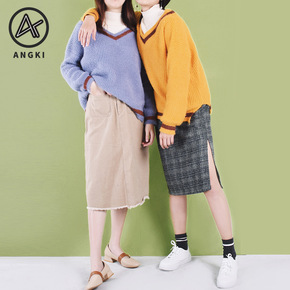 2019秋冬新款女装甜美针织衫欧美慵懒风V领宽松套...