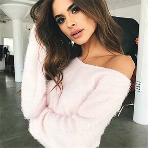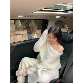 胖mm慵懒风纯欲白色套头毛衣秋冬大码轻熟风一字肩针...