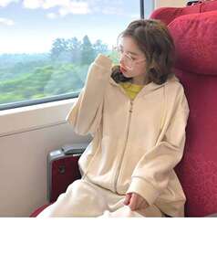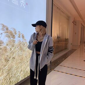 8332连帽卫衣女秋2020新款宽松慵懒风上衣开衫...
