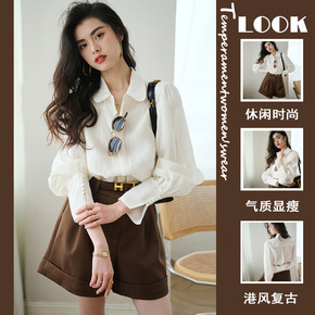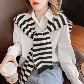 2022秋季设计感小众衬衣女黑白针织两件套慵懒风宽...