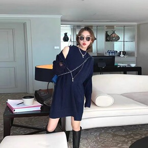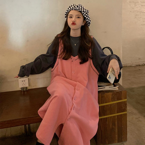 韩系慵懒小众别致时尚气质毛衣裙长袖背心裙子两件套露...