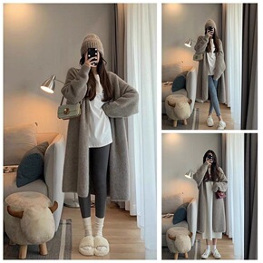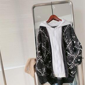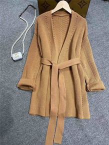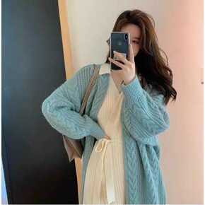 小香风韩系慵懒风温柔系针织衫长款毛衣开衫外套女秋冬...