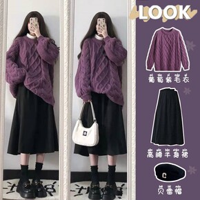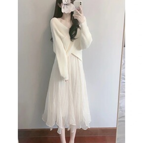 白色毛衣半身裙两件套网红穿搭温柔风气质时尚连衣裙套...