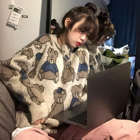 复古慵懒风毛衣女装秋冬装套头新款日系外穿毛线衣宽松...