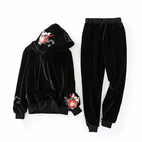 外贸中国风刺绣连帽卫衣女国潮宽松慵懒ins加绒丝绒...