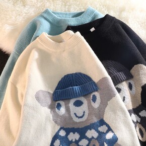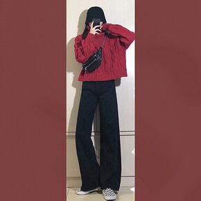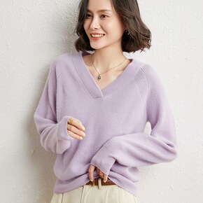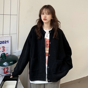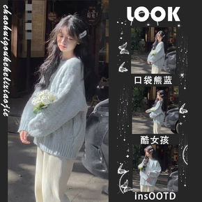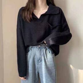 春秋季加绒加厚宽松慵懒风V领套头打底外穿学生长袖针...
