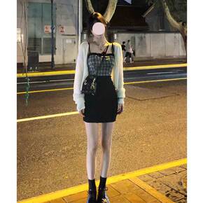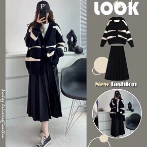 慵懒风圆领秋冬季宽松百搭温柔风针织毛衣两件套装高腰...