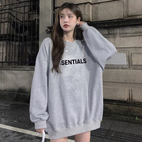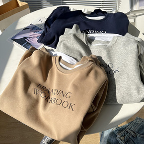 秋冬加绒加厚圆领ins卫衣女潮无帽韩版宽松慵懒风中...