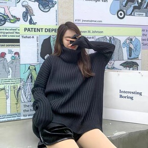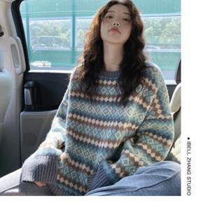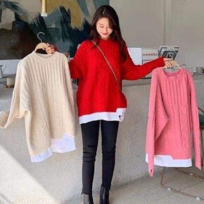 2021秋冬新款韩版拼接厚毛衣女宽松显瘦慵懒风破洞...