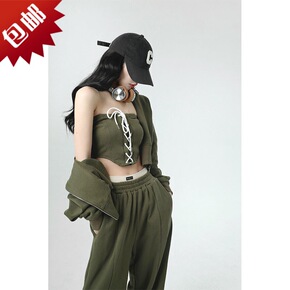 22夏季新款连帽前短后长衬衫+抽绳松紧长裤清凉舒适...