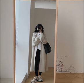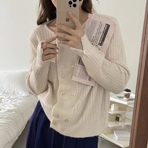 2022秋冬新款圆领双排扣长袖针织开衫外穿上衣女宽...