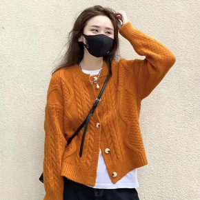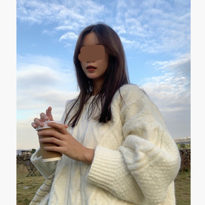 2022春秋新款麻花针织开衫女宽松温柔风日系软糯毛...