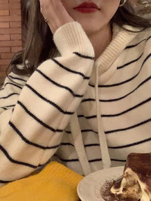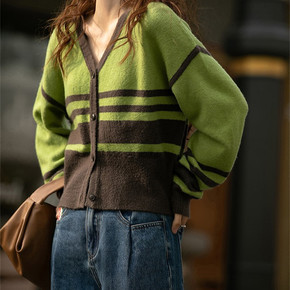 日系慵懒风条纹毛衣外套女2022秋冬新款宽松显瘦连...