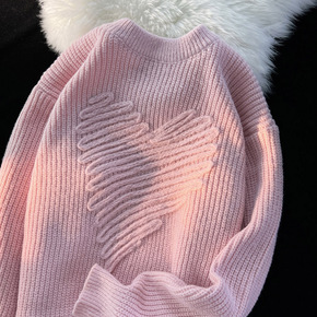 日系V领爱心毛衣女秋冬宽松外穿ins韩系慵懒风温柔...