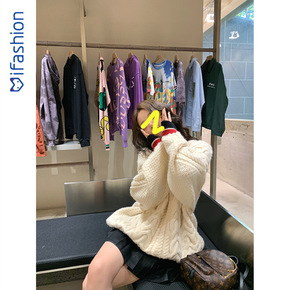 张贝贝ibell 曼哈顿女孩慵懒风撞色麻花毛衣秋冬...