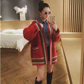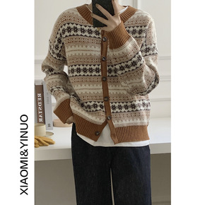 秋冬2021新款女装慵懒风针织开衫圣诞新年毛衣外套...