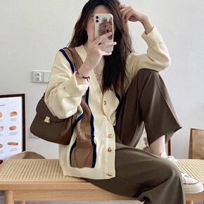 秋冬毛衣女装气质V领慵懒风宽松长袖开衫针织外套女2...