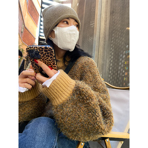 2021秋冬新款慵懒风复古宽松显瘦保暖软糯圆领毛茸...