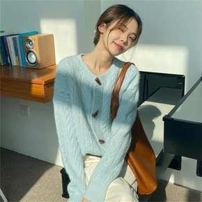 【欧凡】8444提花毛衣开衫女2021冬新款慵懒风...