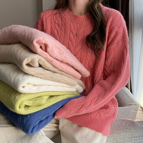 麻花大毛衣女冬天加厚软糯系宽松慵懒风粗针织衫韩版套...