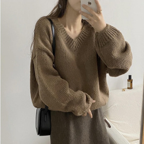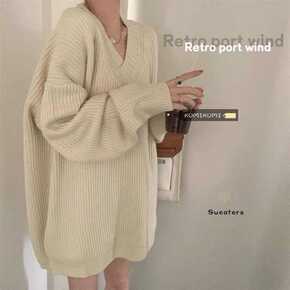 秋冬季加厚毛衣2021新款慵懒风外穿V领宽松中长款...