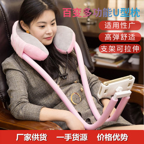 批发U型枕护颈椎多功能懒人手机支架U型枕旅行挂脖子...