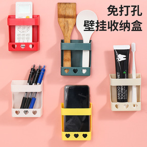 手机挂壁支架收纳盒充电免打孔墙壁挂置物架黏贴式床头...