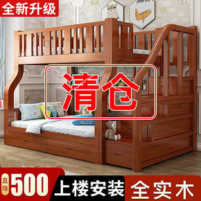 全实木高低床子母床双层床上下床铺两层儿童成人多功能...