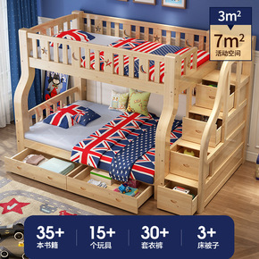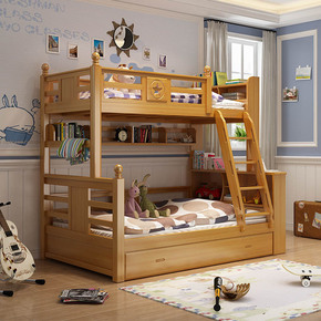 厂家批发儿童床实木子母床上下铺美式高低床木蜡油双层...