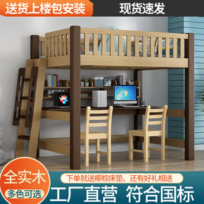 实木高架床成人双层高低床带书桌上下铺多功能组合床儿...
