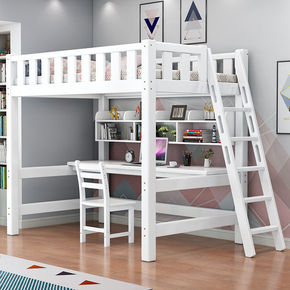 上床下柜下桌高低床带书桌实木成人组合双层省空间高架...