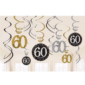 亚马逊专供12件套pvc60岁生日pvc螺旋挂饰拉...
